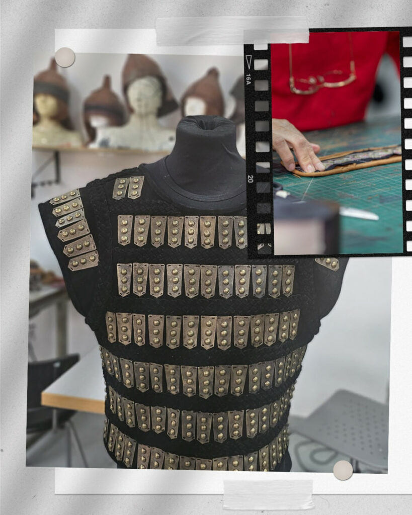 Trikerioti joined the project from the early stages and, before starting the tailoring, visited some of the world’s leading costume workshops, including Peris Costumes, where she explored existing pieces to dress the extras and selected fabrics that would mark the visual style of the series.